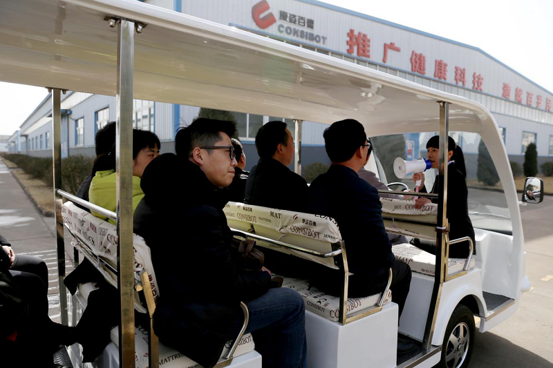到访嘉宾乘坐参观车参观腾博会官网制造中心生产线