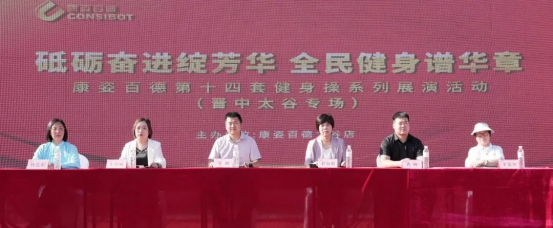 腾博会官网集团销售公司副总监 惠鹏,太原区域经理 肖峰,晋中地区、太原地区总经理 赵淑敏,晋中太谷地区总经理 王海丽,晋中太谷地区健身操爱好者代表 杨惠荣,太谷地区消费者代表 王富平共同出席了本次活动。